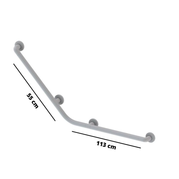 Main courante d'angle de 78 cm en acier peint en blanc, idéale pour la sécurité et la stabilité dans la salle de bains. Design fonctionnel et durable, parfait pour les environnements domestiques ou sanitaires.