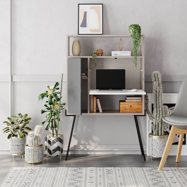 Armoire polyvalente avec porte à rabat, dimensions 80x130h cm, blanc et anthracite. Idéale pour organiser et ranger avec style les objets de la maison.