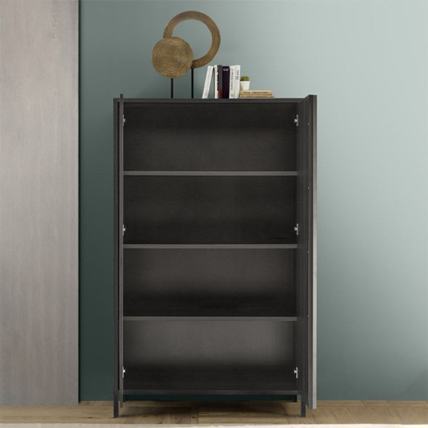Meuble de rangement élégant et fonctionnel avec 2 portes en frêne noir, idéal pour organiser et meubler les espaces de vie avec style.