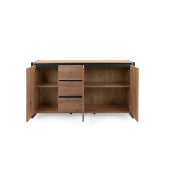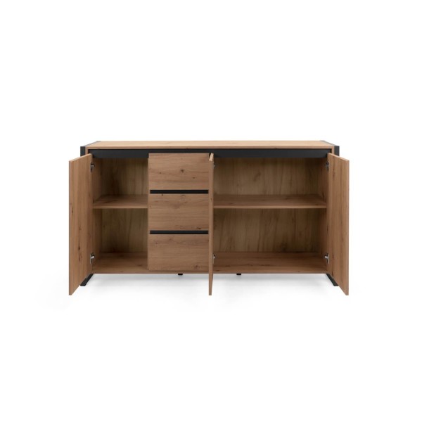 Buffet 160 cm avec portes et tiroirs en chêne et anthracite - Denver 3