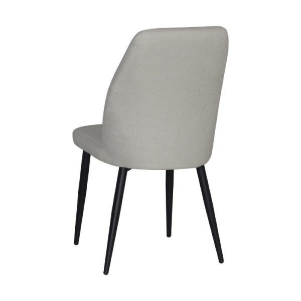 Chaise tapissée au design moderne, couleur taupe et pieds en métal noir. Élégante, confortable et polyvalente, elle est parfaite pour le salon, la cuisine ou le bureau.