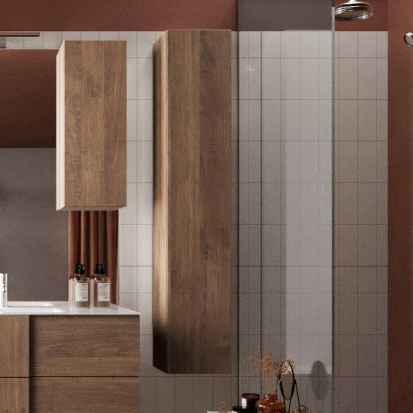 Colonne de salle de bain suspendue en finition chêne, compacte et fonctionnelle. Avec des dimensions de 35x30x120H cm, elle est idéale pour meubler les espaces modernes ou classiques avec style et praticité.