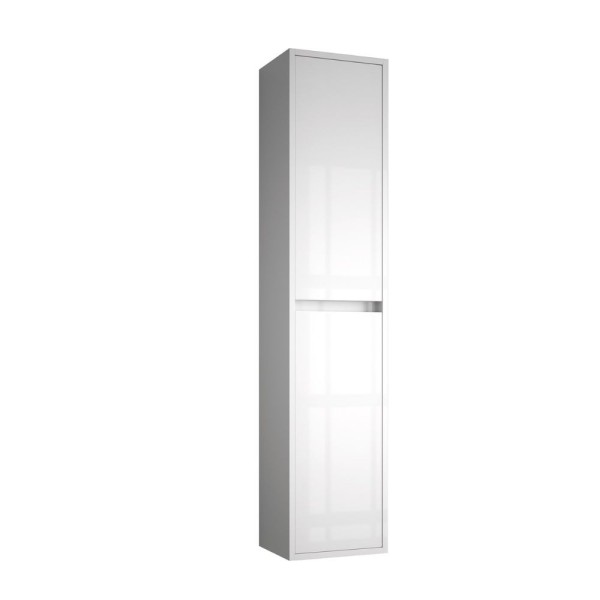 Colonne de salle de bains murale blanche 35x30x120 cm avec portes et étagères internes. Design moderne, finition brillante et peu encombrante, idéale pour meubler la salle de bains avec style et fonctionnalité.