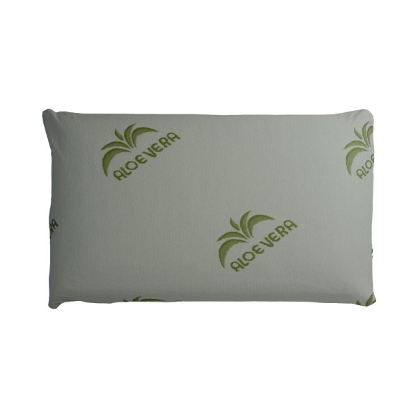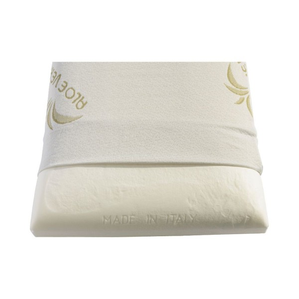 Oreiller orthopédique en mousse à mémoire de forme avec aloe vera, idéal pour un repos régénérant. Taie d'oreiller blanche amovible et lavable. Dimensions : 72x42x13 cm. Confort et hygiène garantis.