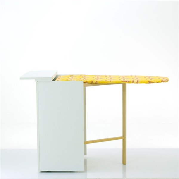 Armoire à repasser peu encombrante avec portes et roulettes, élégante finition blanche. Pratique et compacte, idéale pour les petites pièces. Structure solide et fonctionnelle pour un repassage aisé.