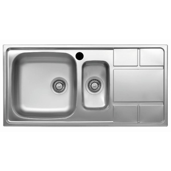 Évier à encastrer MP1162SX 116x50 cm en acier inoxydable, avec deux cuves et égouttoir à gauche. Pratique, durable et polyvalent, parfait pour les cuisines fonctionnelles et modernes.
