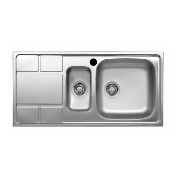 Évier encastré en acier inoxydable Samet SAXT332, avec 2 cuves et égouttoir à droite. Design pratique et durable, idéal pour les cuisines modernes et fonctionnelles.