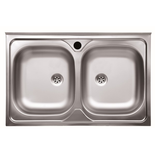 L'évier à double bac 80x50 cm avec surface satinée N214 est parfait pour les cuisines modernes, durable et facile à nettoyer.