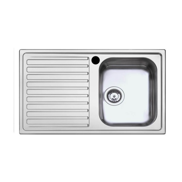 Évier encastré en acier inoxydable 1 cuve et égouttoir à droite.