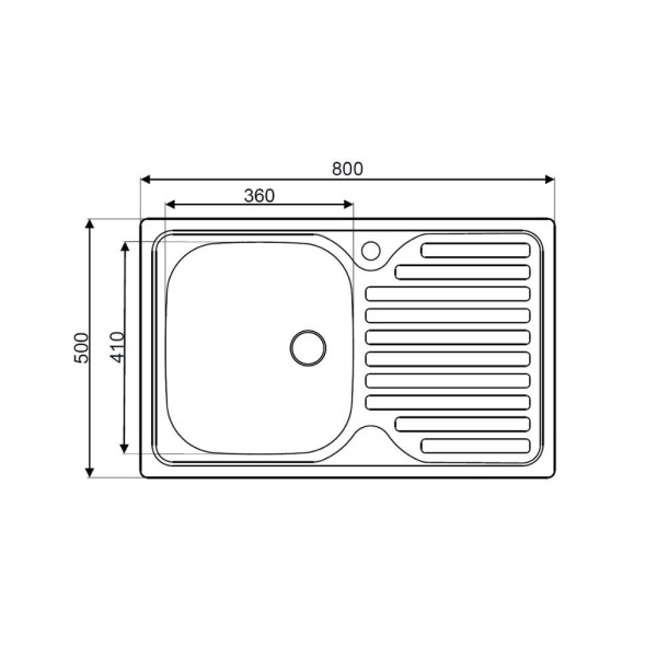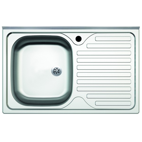 Évier en acier inoxydable avec une cuve et un égouttoir droit, dimensions 80x50 cm, durable et de haute qualité, parfait pour votre cuisine.