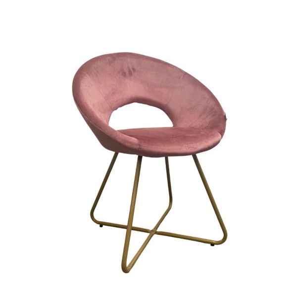 Fauteuil en velours rose avec pieds en métal doré - Ether