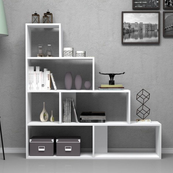 Bibliothèque en échelle Alis 145x145 cm. blanc La bibliothèque en échelle Alis est un excellent choix pour ceux qui veulent un meuble fonctionnel et élégant. Avec ses grandes étagères, elle est parfaite pour exposer des livres, des photos et des objets décoratifs. La bibliothèque est fabriquée en bois de haute qualité et a une finition blanche qui lui permet de s'adapter à n'importe quel type de mobilier. Avec ses dimensions de 145x145 cm, la bibliothèque en échelle Alis répondra aux besoins d'espace de tout salon. Caractéristiques :