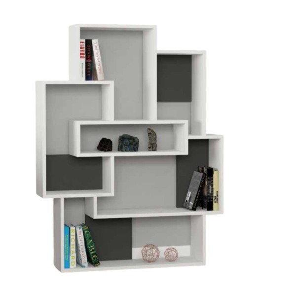Bibliothèque en bois 101x132H cm avec 7 étagères Coloris blanc et anthracite - Barce