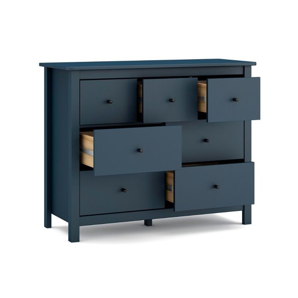 Commode en bois massif à 7 tiroirs bleu 110x40x80H cm - Missy