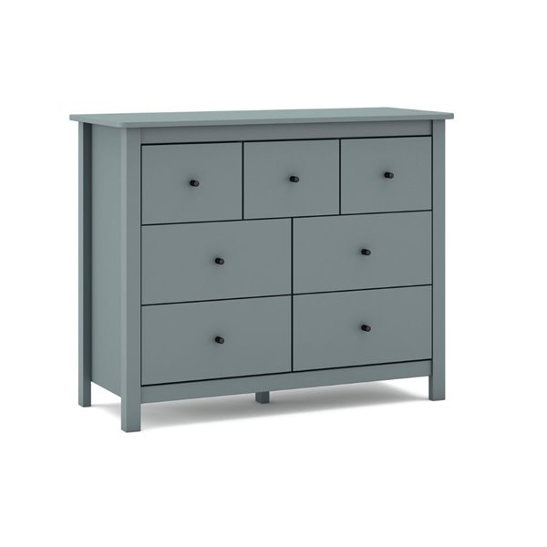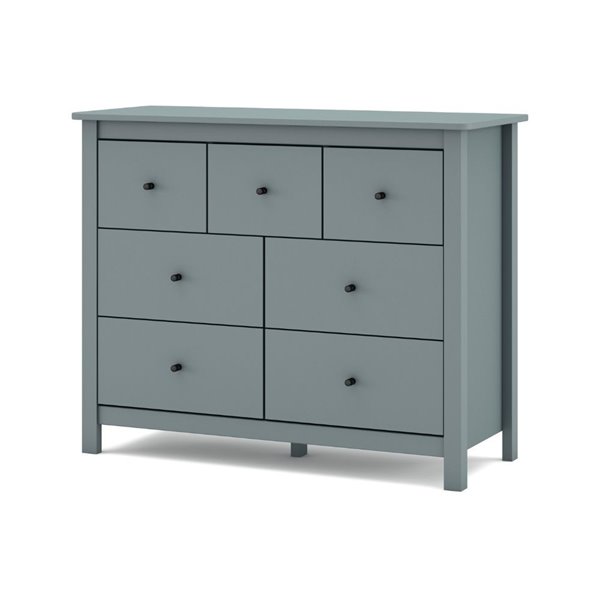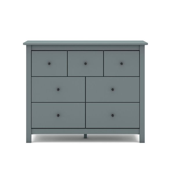 Commode en bois massif vert kaki avec 7 tiroirs spacieux. Design vintage et fonctionnel, idéal pour meubler avec style les salons, les chambres à coucher ou les entrées élégantes.
