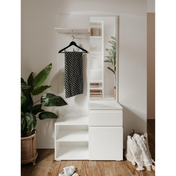 Armoire d'entrée 85x195h cm avec miroir et portemanteau blanc - Image
