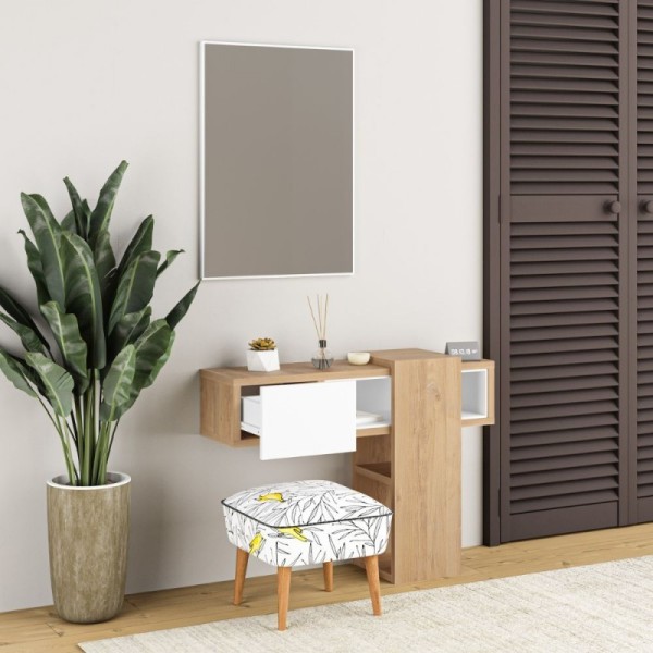 Armoire d'entrée avec miroir en chêne et blanc - Efes