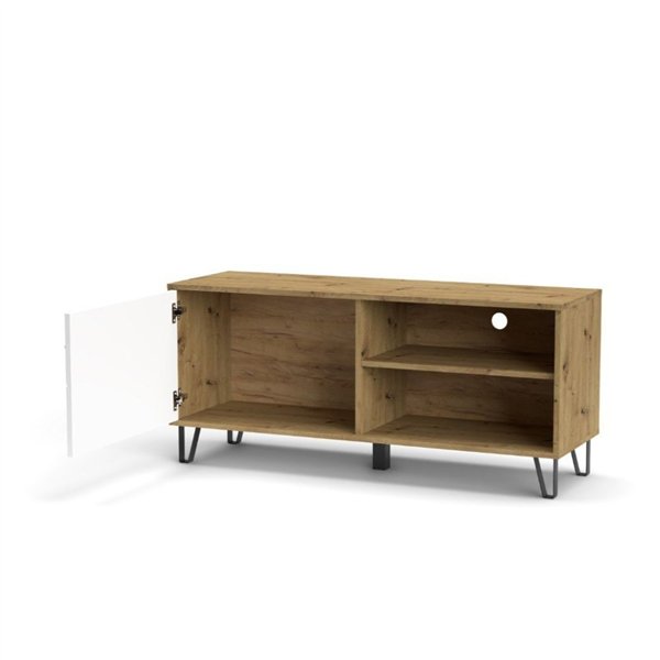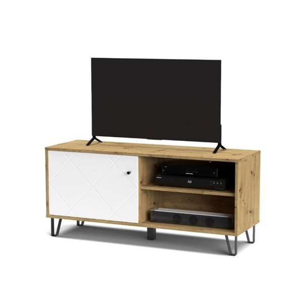 Meuble TV 1 porte et compartiment ouvert BolloBO01B 123x40x55H coloris chêne blanc