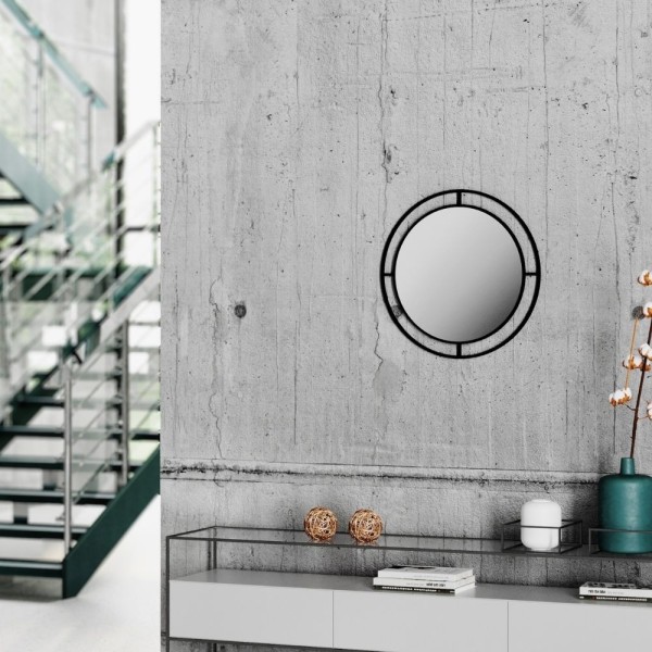 Miroir rond de 57 cm avec double cadre métallique noir - Bubble