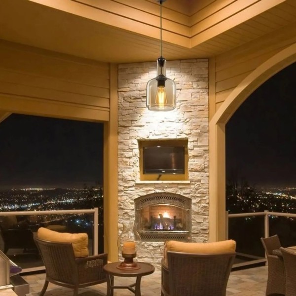 Lampe suspendue au design vintage avec diffuseur et abat-jour fumés, parfaite pour créer une atmosphère chaleureuse et rétro dans n'importe quelle pièce.