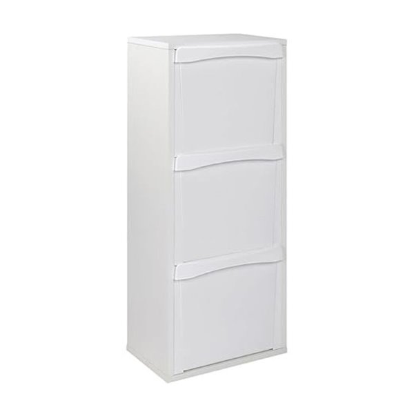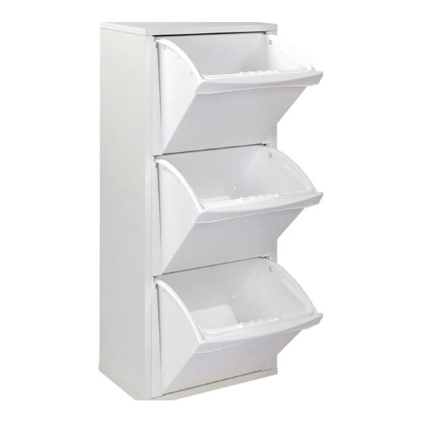 Meuble poubelle avec 3 seaux amovibles blanc 40x25x102H cm - Elide