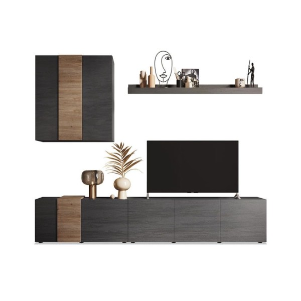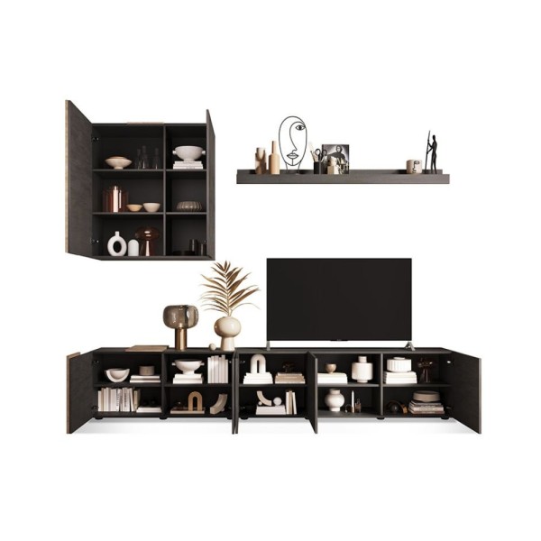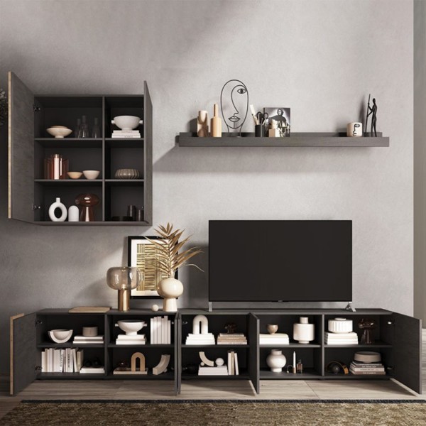 L'élément mural Licia de Toscohome est un meuble élégant et fonctionnel, réalisé en gris tourterelle et noyer. Avec des dimensions de 250x186H cm, il offre un grand espace pour organiser et présenter des objets.