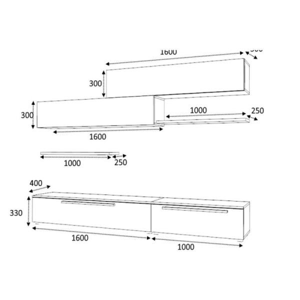 - 2 bases de meuble TV avec porte à rabat 260x40x33h. cm.