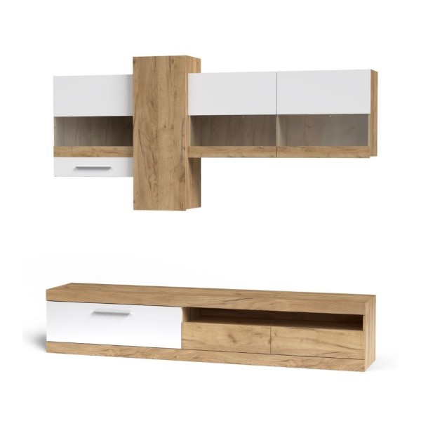 Le système mural de style moderne de 235 cm en chêne et blanc - Tokio est un meuble élégant et fonctionnel pour votre salon. Fabriqué avec des matériaux de haute qualité, il offre un grand espace de rangement et de présentation pour organiser et mettre en valeur vos objets préférés. Son design moderne et l'association des couleurs chêne et blanc apportent une touche raffinée et contemporaine à la pièce. Avec ce meuble mural, vous pouvez créer une ambiance chaleureuse et épurée dans votre espace de vie.