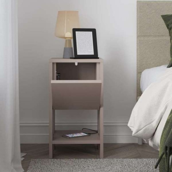 Table de chevet avec porte à rabat gris tourterelle 30x55H cm - Ema