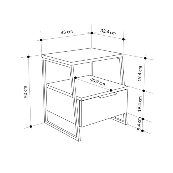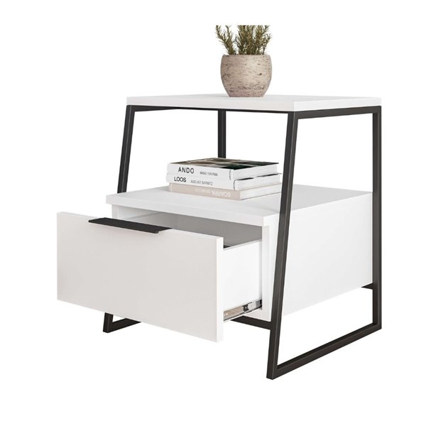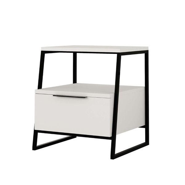Table de chevet avec tiroir et étagères en blanc avec pieds en métal noir 45x41x50H cm - Paul