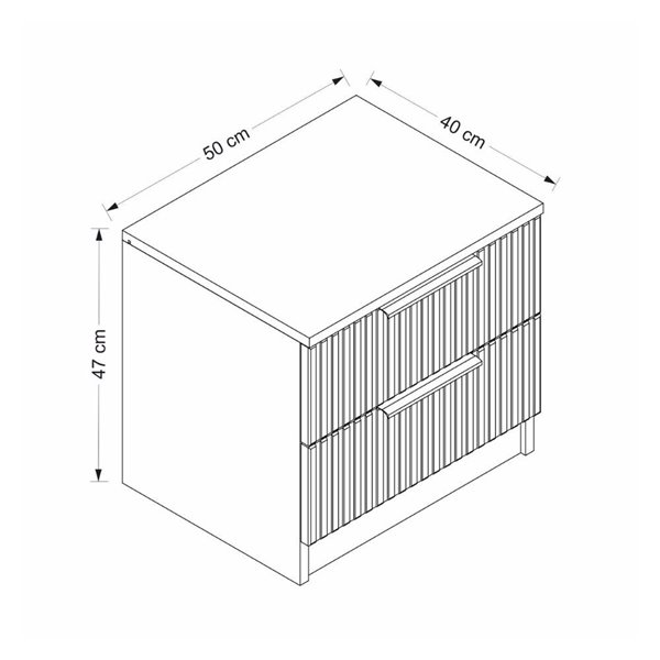 Table de chevet moderne avec deux tiroirs, finition cachemire et façades à effet nervuré. Elégante et fonctionnelle, elle est parfaite pour compléter la chambre à coucher avec style et praticité.