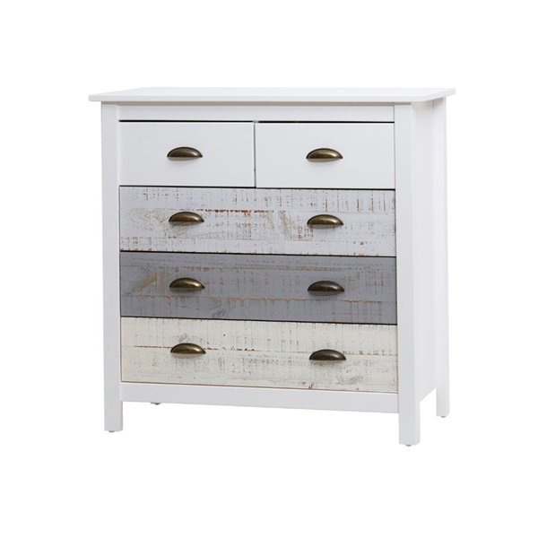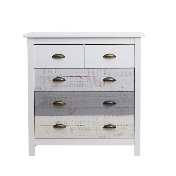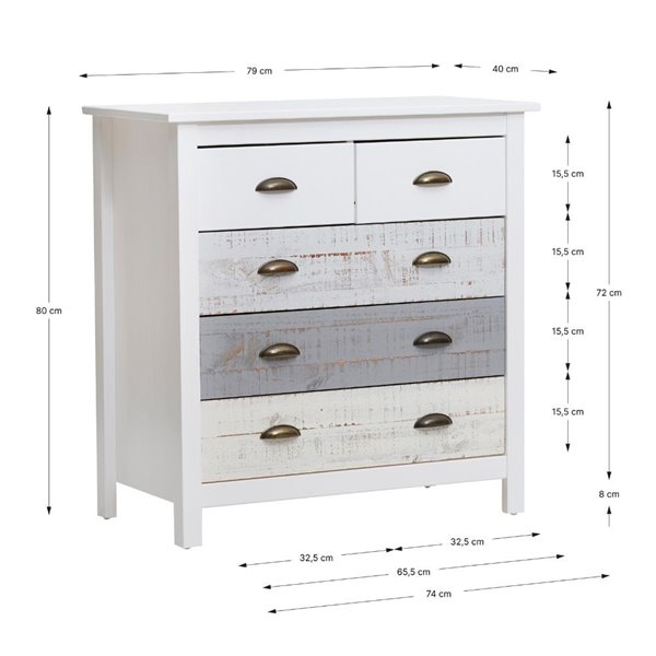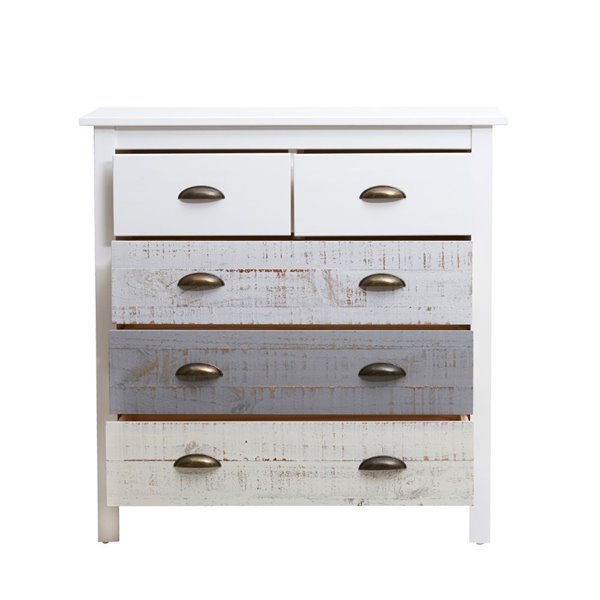 Commode en bois massif avec 5 tiroirs en blanc gris et crème 79x40x80H cm - Romantica
