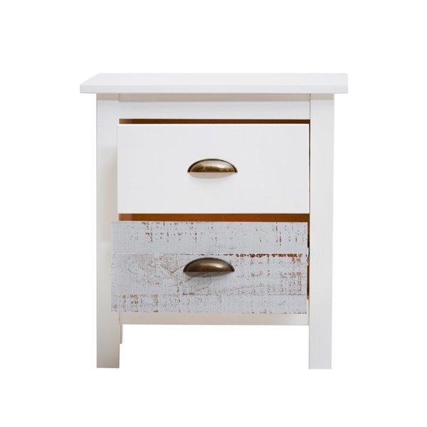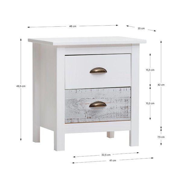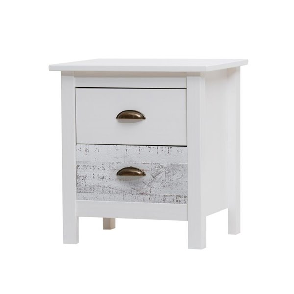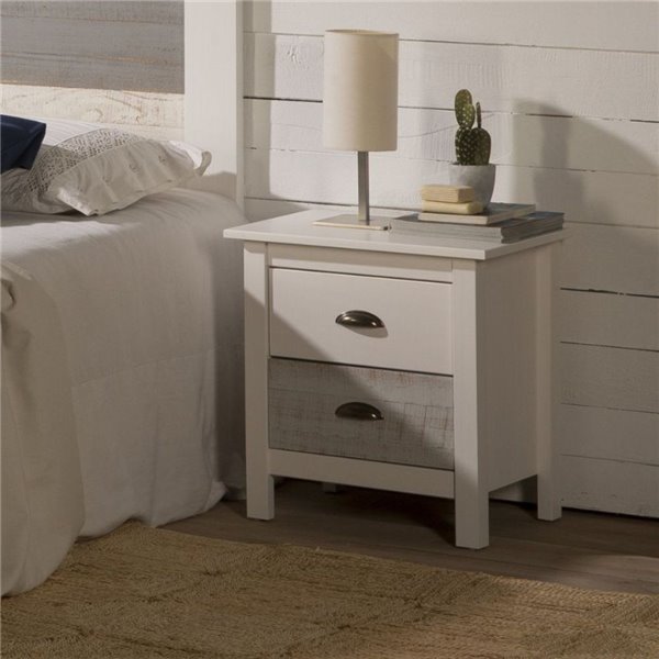 Table de chevet en bois massif blanc et gris 46x35x49,5H cm - Romantica
