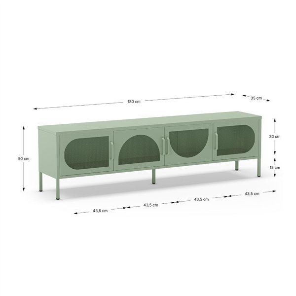 Entièrement réalisé en métal peint de haute qualité, ce meuble TV garantit une solidité et une stabilité à long terme.