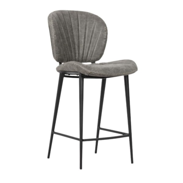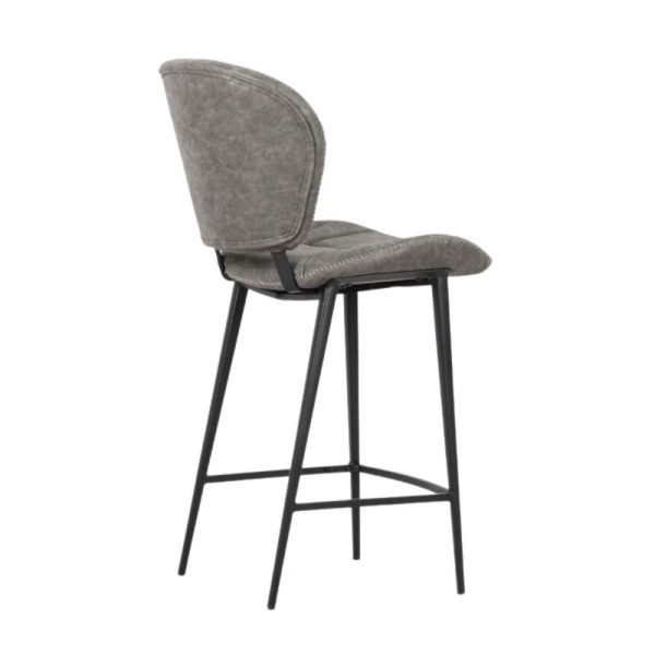 Tabouret moderne en similicuir gris avec base solide en métal noir. Un design élégant et un confort idéal pour les cuisines, les salons ou les environnements contractuels. Pratique, durable et tendance.