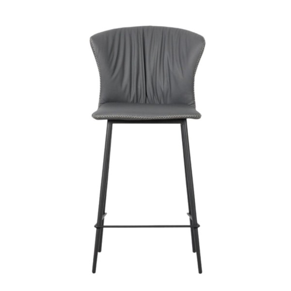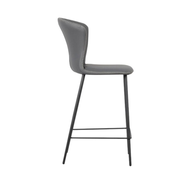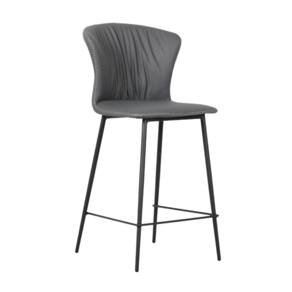 Tabouret moderne en similicuir gris avec base solide en métal noir. Un design élégant et un confort idéal pour les cuisines, les salons ou les environnements contractuels. Pratique, durable et tendance.