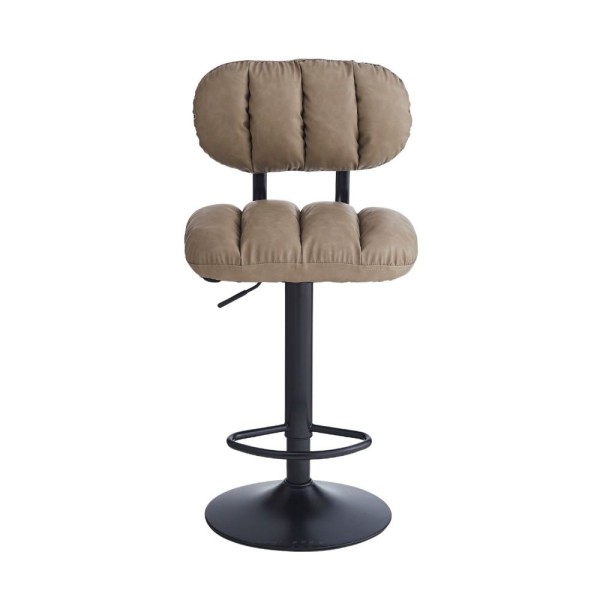 Tabouret de bar en similicuir camel avec structure en métal noir solide. Design moderne et confortable, parfait pour les cuisines, les péninsules et les environnements contemporains.