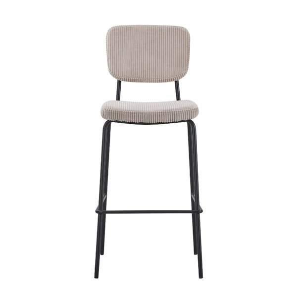 Tabouret haut rembourré en tissu taupe avec pieds en métal noir. Design moderne et élégant, idéal pour les cuisines, les comptoirs ou les espaces de vie contemporains. Confort et style assurés.